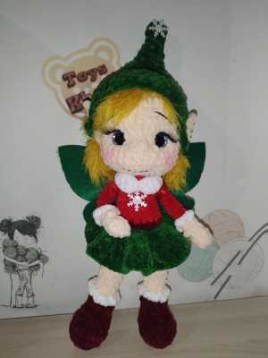 Вязанная мягкая игрушка Эльф Новогодний ручной работы Рост 34 см Глазки на безопасном крепление Голова подвижная на...