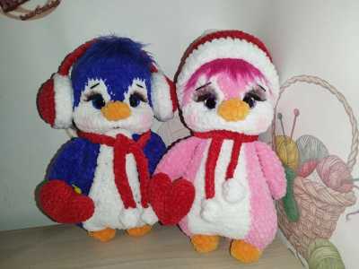 Вязанные игрушки ручной работы Пингвины Рост 29см Глазки на безопасном крепление Шапочки ,шарфики снимаются Сердечко...