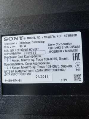 Продам телевизор сони в отличном состоянии Модель KDL42W828B, сделано в Малайзии, в 04.2014г. С документами.
