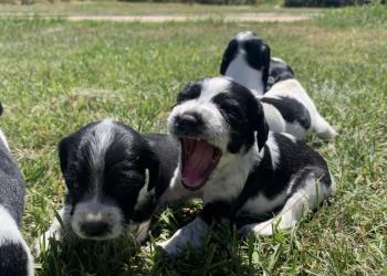 Щенки от русского спаниеля, мать чистопородный русский спаниель, отец помесь. У всех щенков купированные хвостики.